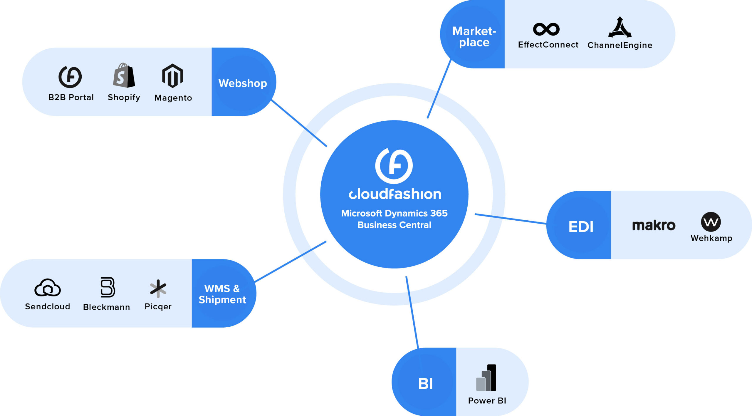 CloudFashion koppelt naadloos met de platforms die jouw modegroothandel vooruithelpen. Of je nu verkoopt via een eigen B2B‑webshop, marketplaces, of fysieke retail, onze integraties zorgen voor een gestroomlijnde dataflow tussen Business Central en je operationele landschap. Orders, voorraden, verzendingen en analyses worden automatisch gesynchroniseerd — zonder dubbel werk of foutgevoelige handmatige acties.